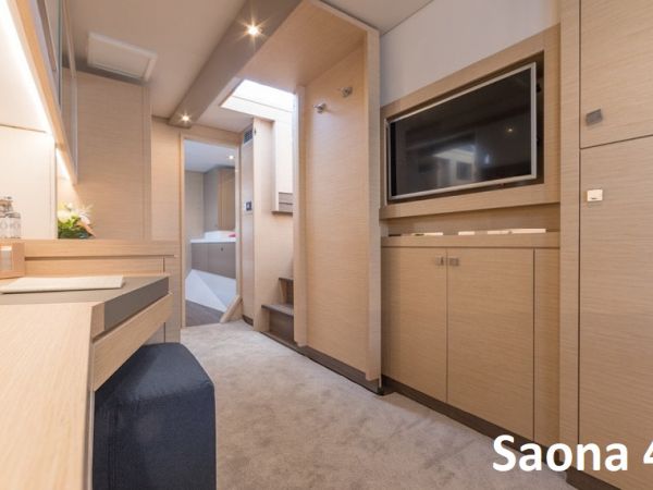 Eine fünfte Kabine ist für den Yogalehrer und deren Begleitung vorgesehen. Durch diese Kabine hat der Skipper Zugang zu seiner Kabine.
