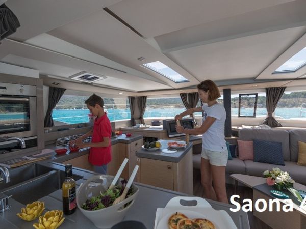 An Bord des Katamarans steht eine voll ausgestattete Küche zur Verfügung.